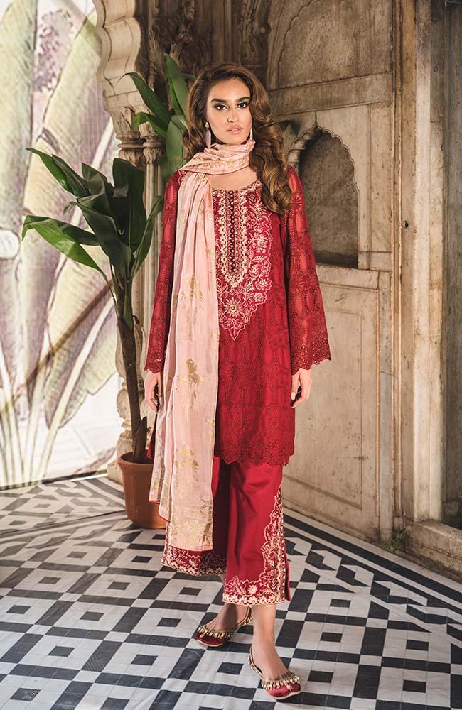 3 Piece Embroidered Formal SuitShirt Front: Chicken Kari Chiffon
