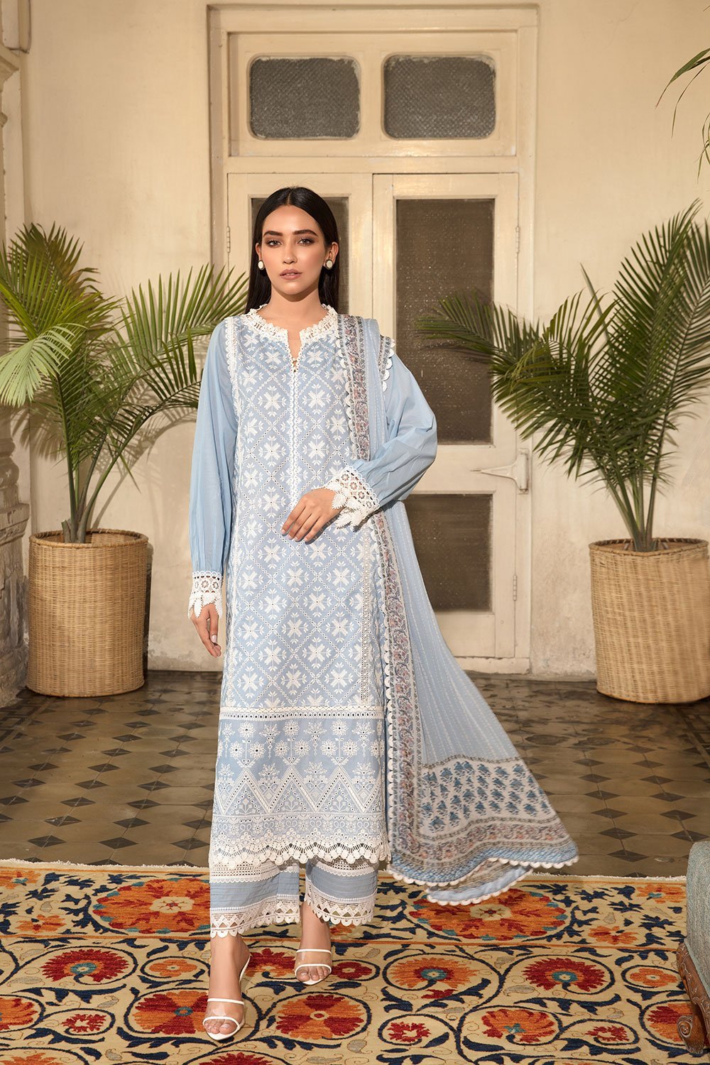 - Schiffli embroidered front (Lawn)