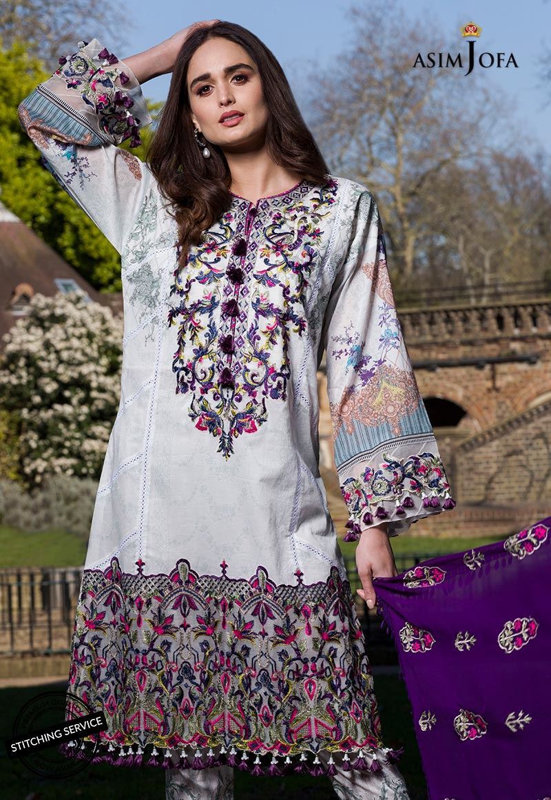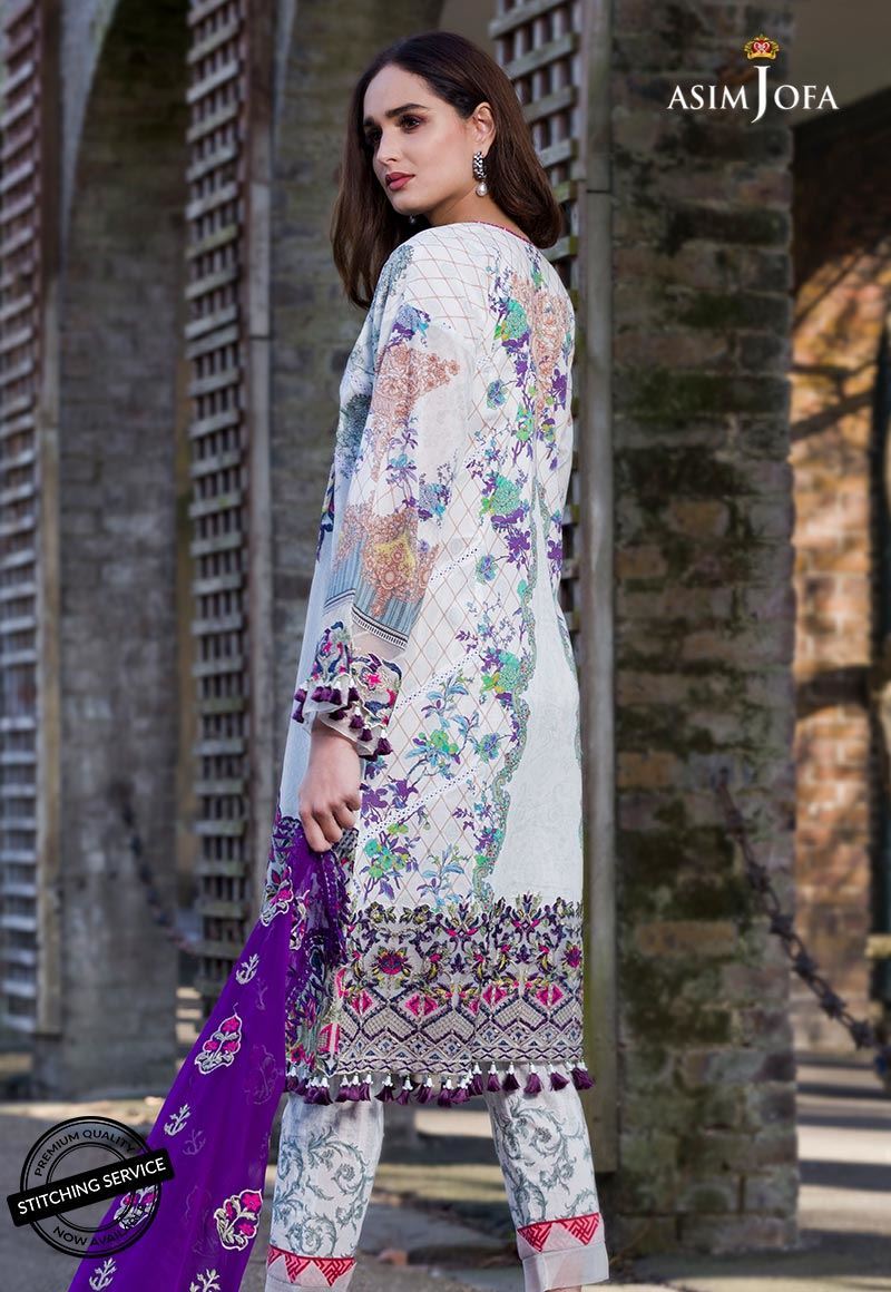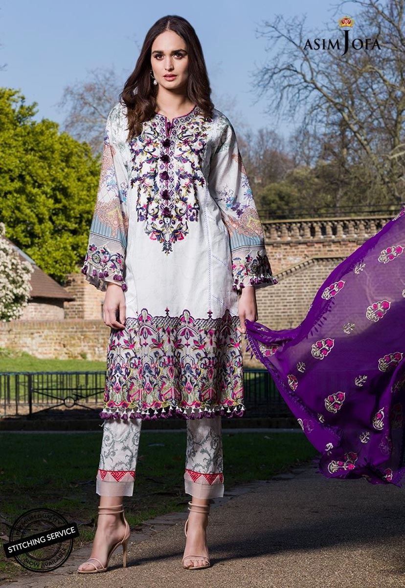 Beat the heat with this cool white ensemble with subtle print paired with a rich indigo purple embroidered dupatta this print exudes sheer sophistication with its embroidery done in kacha resham this design would appeal to all.