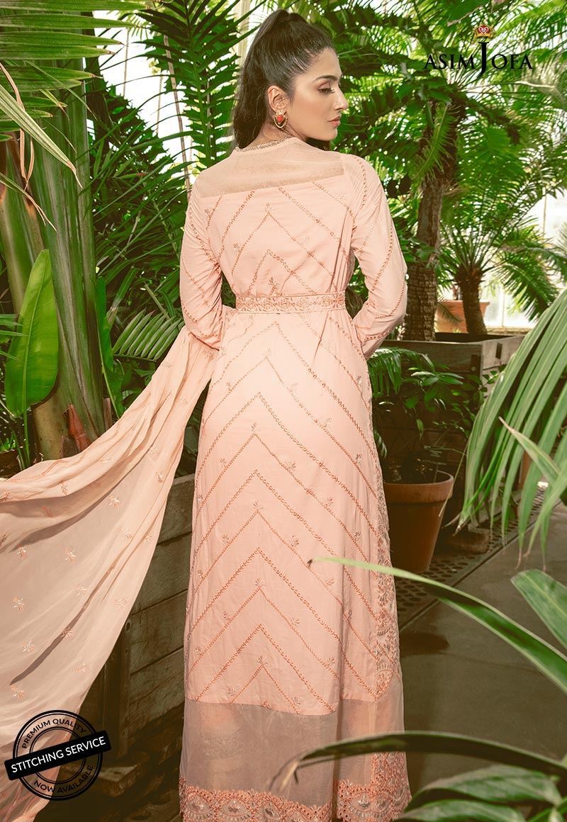 Perfect cool and crisp peach outfit for your casual brunch with boring technique detail giving it a harmonious blend of sequence discovered within a chic fabric giving a balance to design, palette and luxury at once. A fresh take on laid back luxe. Combined with printed pants and embroidered chiffon dupatta.