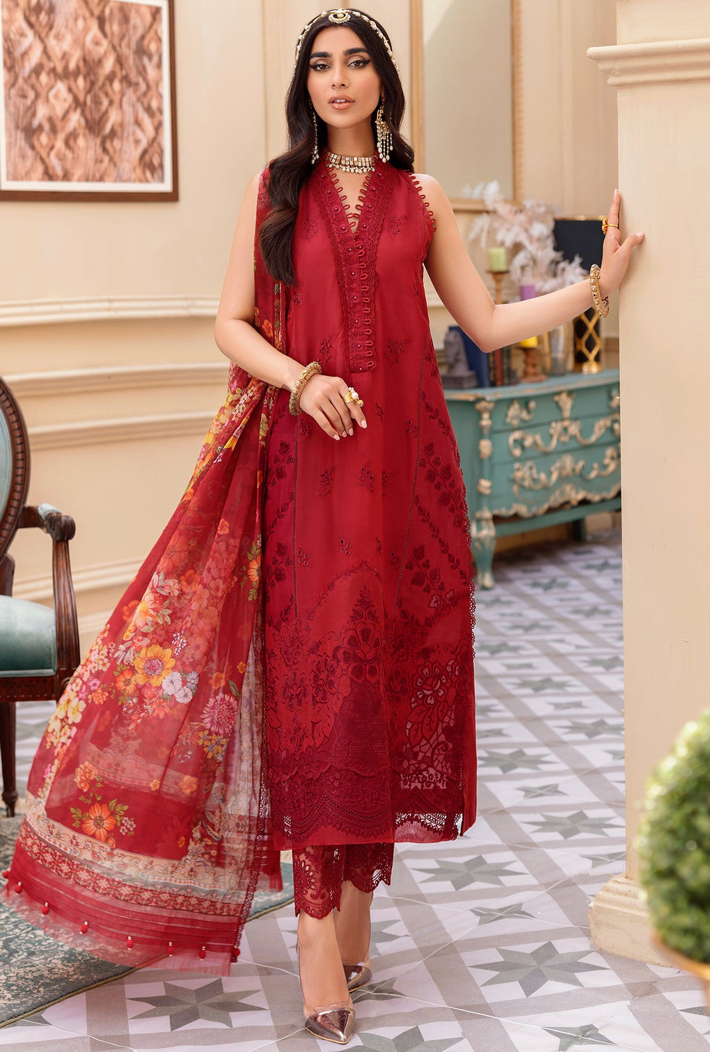 D - 04 - Scarlet | Noor By Saadia Asad | Eid Laserkari Collection 2022
