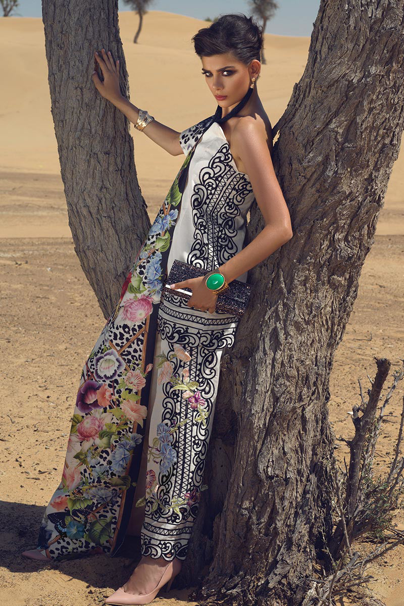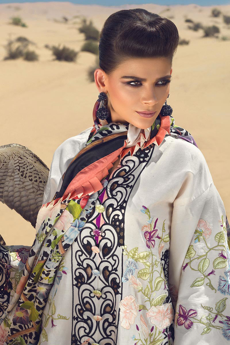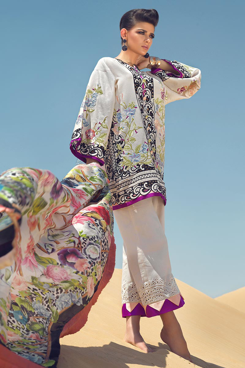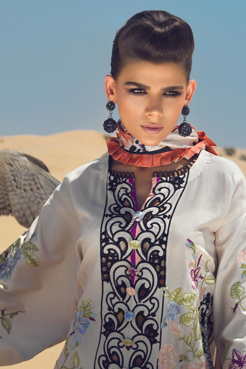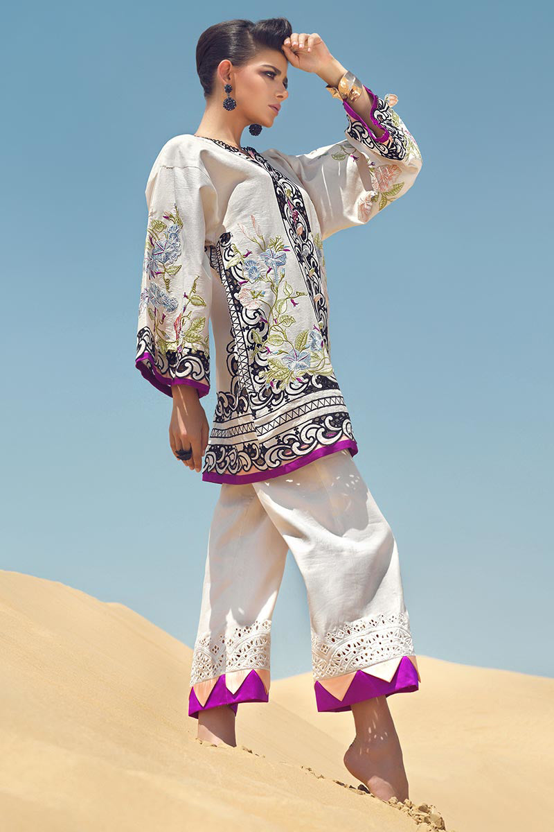 Embroidered border on silk lawn for front, back and sleeves