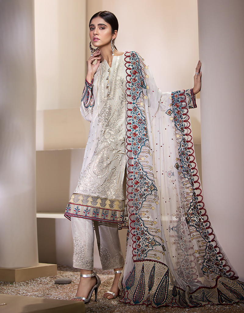 Chiffon Embroidered Back with Front Extension