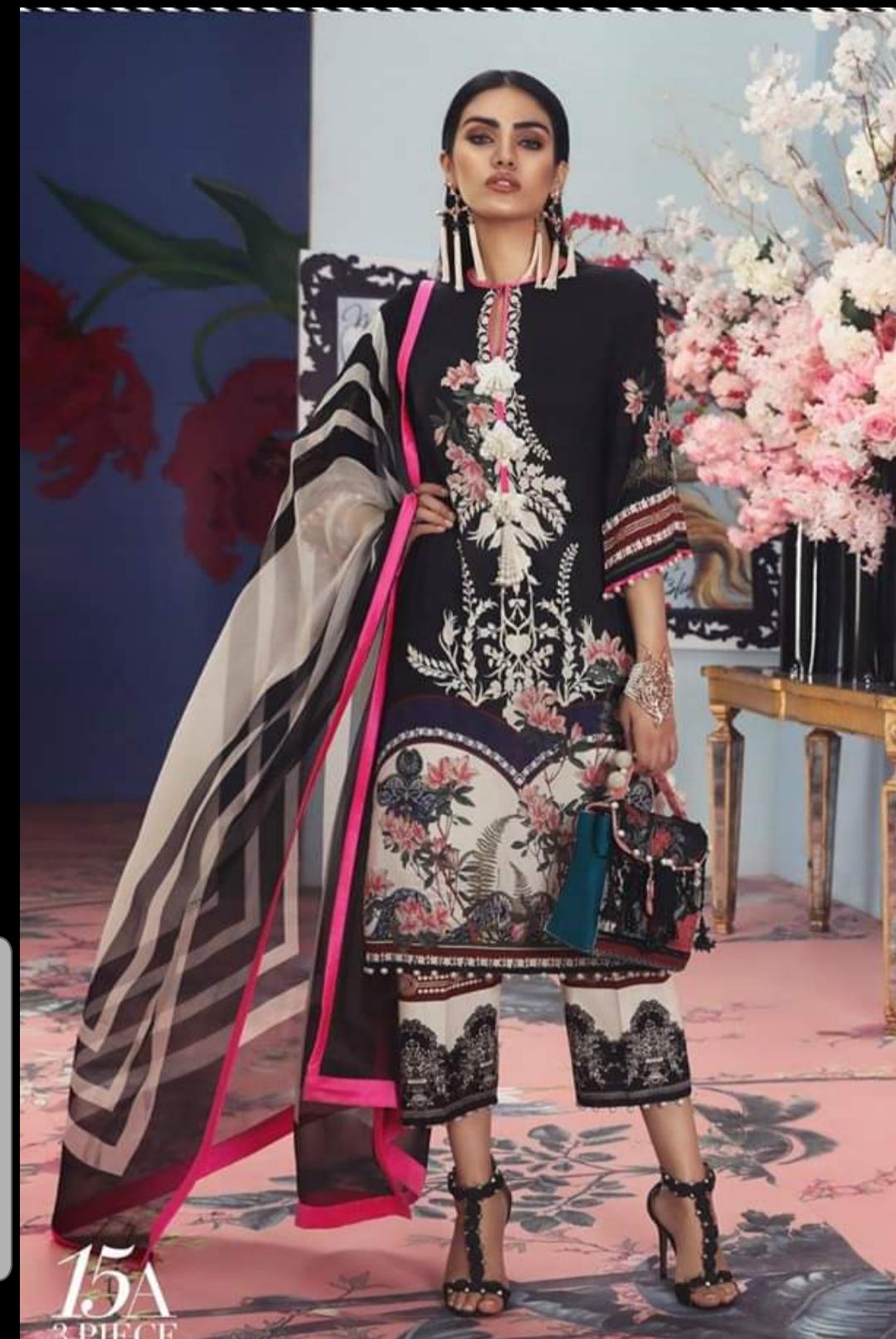 A monochromatic modern floral digitally printed lawn shirt with Mughal patterns and a modern monochromatic printed chiffon-blend dupatta.Code: 15A (Sable Dream)